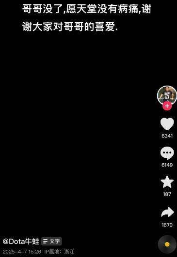 当天傍晚,其家人用他的账号发文:“哥哥没了,愿天堂没有病痛,谢谢大家对哥哥的喜爱。”