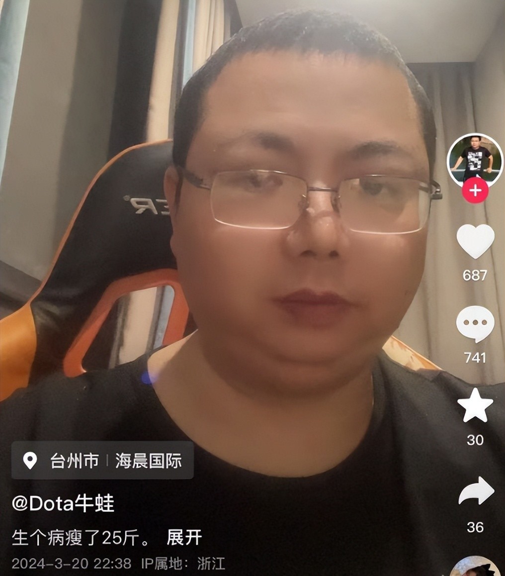 据了解,“Dota牛蛙”生前患高血压尿毒症,已透析5年,他一直在抖音发布短视频分享自己与病魔抗争的日常。去年3月份,Dota牛蛙称自己生个病瘦了25斤。